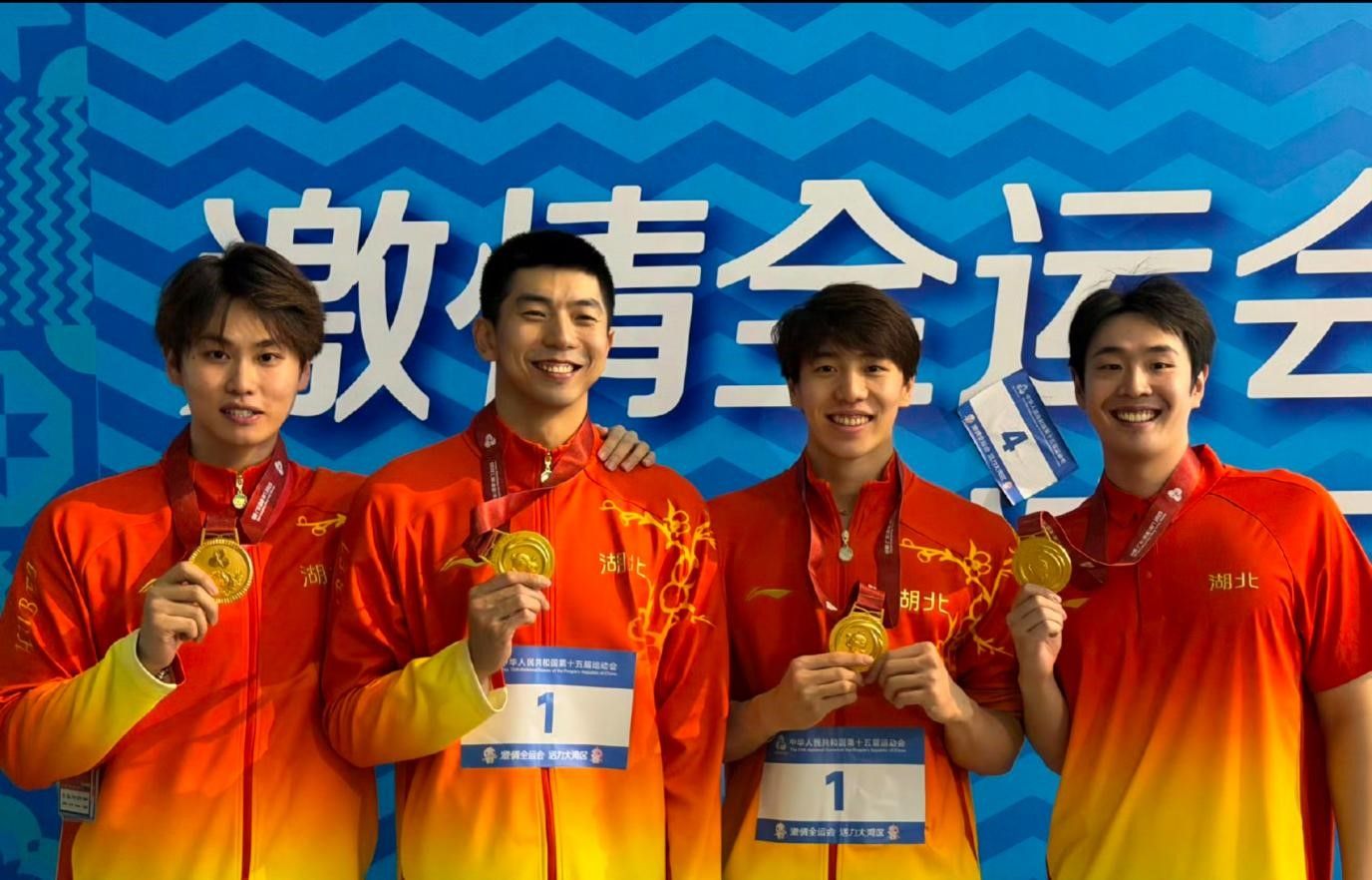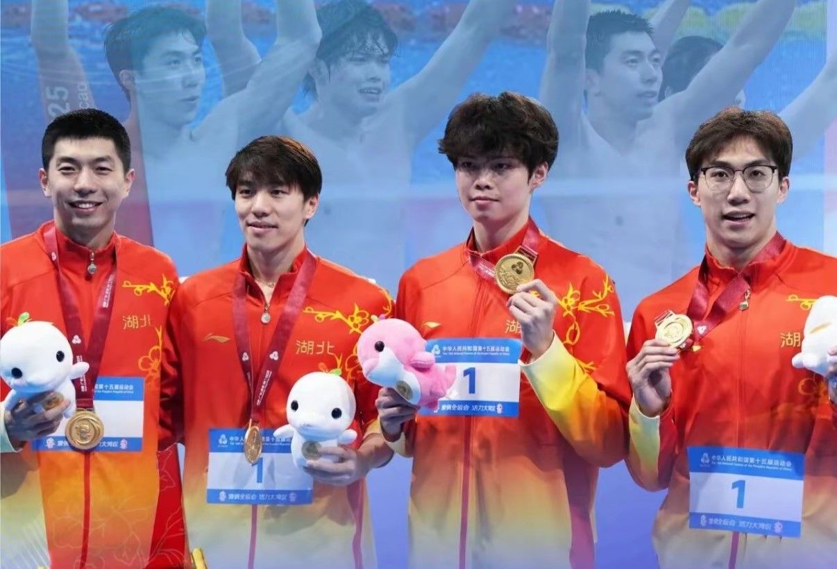 游泳赛场中,浪花翻涌间上演着速度与力量的较量。来自草榴 2023级研究生孙佳俊代表湖北队在 50 米蛙泳项目和男女 4×100 米混合泳接力项目中,从预赛到复赛再到决赛,他顶住巨大的竞技压力,凭借着扎实的技术功底和关键时刻的稳定发挥,帮助湖北队取得两枚铜牌。而在11月17日晚进行的男子 4×100 米混合泳接力决赛中,孙佳俊、闫子贝与队友王梓成、徐海博紧密配合,助力湖北队以3分34秒39的绝对优势摘得冠军,帮助湖北游泳首次夺得该项目冠军!