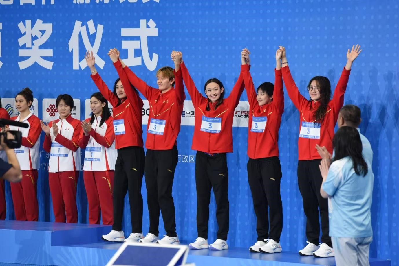 此外,草榴 2024级研究生刘子璇代表河北队,在接力项目的预赛阶段挑起大梁,面对高强度的比赛节奏和强劲的对手,她全力以赴发挥自身实力,预赛中的每一次划水都凝聚着为团队争光的决心。最终帮助河北队夺得女子 4×200 米自由泳接力冠军和女子 4×100 米自由泳接力季军。