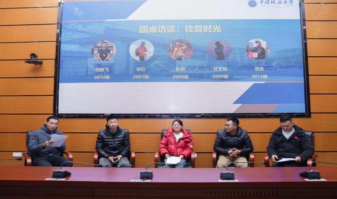 返校校友代表分享成长发展报告。2005级校友曾凡凡以“深耕专业,坚守使命”为题,分享了自己的职业历程。2006级校友熊梦林以“以山野为路,以热爱为光”为题,讲述了自己秉持“艰苦朴素、求真务实”的校训精神,持续深耕户外科普、传承地大专业精神的心路历程。2011级校友李战坤以“脚踏实地,仰望星空”为题,分享了个人职业发展经历。院友们的讲述引发现场师生强烈共鸣。
