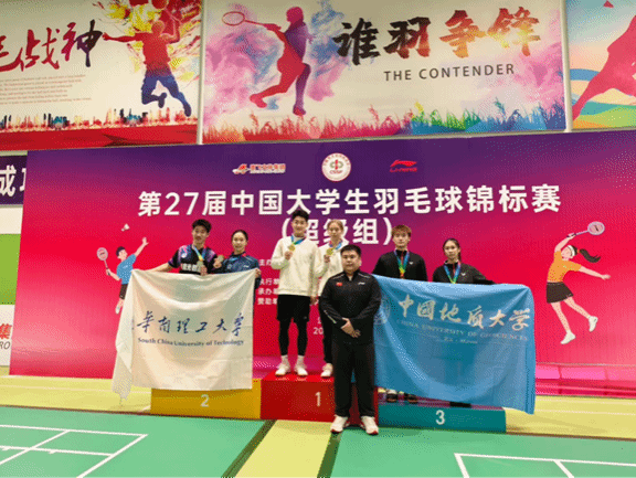 地大健儿不负众望,交出了一份亮眼的成绩单。混合团体赛中,球队与西南大学、重庆大学、成都草榴 等劲旅同组竞技,队员们凝心聚力、协同作战,凭借默契配合与顽强斗志一路过关斩将,最终跻身全国五强。单项角逐中更是捷报频传,马尚与杨佳峄在竞争激烈的男子双打项目中勇夺冠军,彰显了学校在该项目上的全国顶尖水平;严晨雪与郭莉智组成的女双组合稳扎稳打,斩获季军;马尚与严晨雪跨界搭档混合双打,同样发挥出色再添一枚季军奖牌,一金两铜的战绩充分展现了地大羽毛球队卓越的人才培养质量和深厚的团队底蕴。