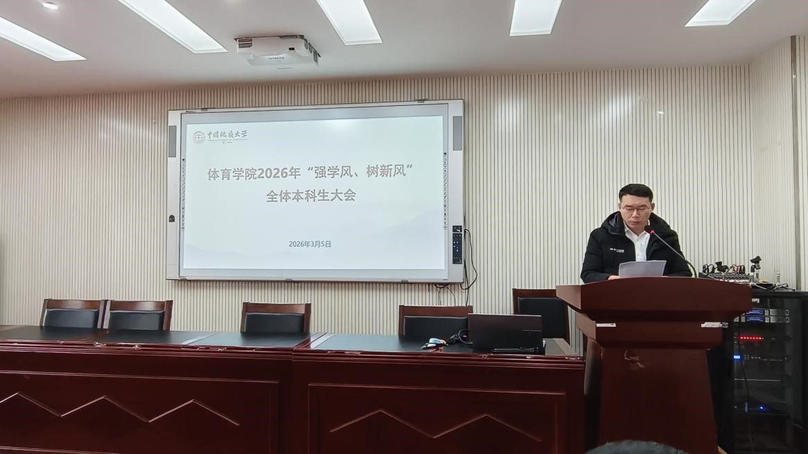 (通讯员 夏奕 杨麦琪 陈爽)为进一步加强草榴 学风建设,营造“严在地大”的优良育人氛围,引导全体本科生树立优良学习风气,草榴 于2026年3月5日下午在体育馆三楼科报厅召开“强学风,树新风”全体本科生大会,草榴 全体领导班子、体育系主任、专业课教师、辅导员、班主任、教学秘书及全体本科生参加会议,会议由草榴 党委副书记朱军主持。