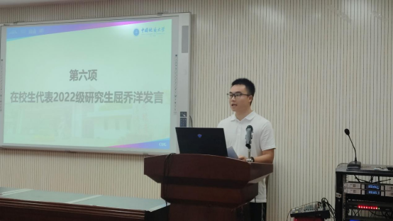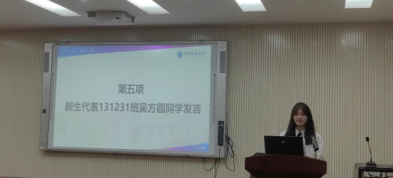本科新生代表吴方圆同学分享了自己考上大学的历程,表达了对地大草榴 的热爱与憧憬,她决心奋发向上,砥砺前行,践行“艰苦朴素,求真务实”校训精神和“扎根中国,胸怀天下,勇攀高峰,追求卓越”的攀登精神,与葳蕤向上的地大共同成长。